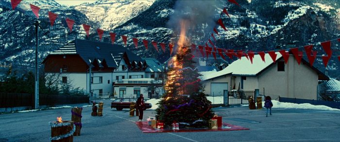 Szukajmy dalej. Może odpowiedź kryje się w krajobrazie? W filmie Mysius jest on ważny i oszałamiający. Miasteczko leży u podnóża gór, nieopodal rozlewa się jezioro. Pejzaż jest rześki, ostry, jak to w grudniu. Sensualność obrazów przywodzi na myśl pierwotne żywioły, zapisany w nich naturalny porządek. Wszystkie są tutaj obecne: powietrze, woda (nie tylko w jeziorze, ale również w basenie), ziemia, a także (diabelski) ogień, który już na wstępie złowróżbnie bucha z ekranu.